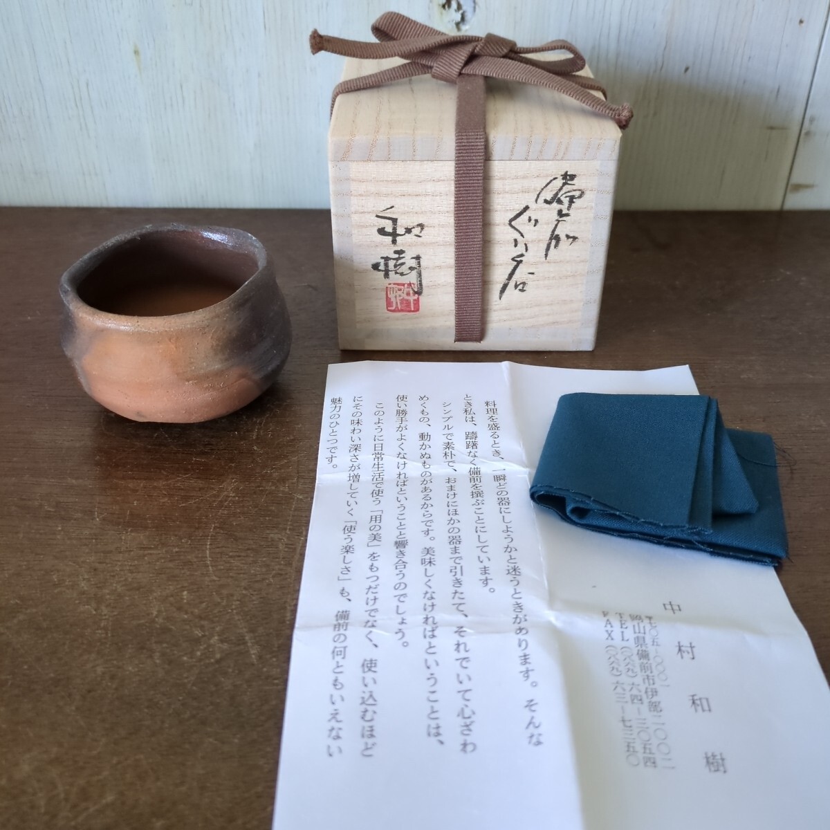 > ② 備前焼 人気作家 最上作 中村和樹 窯変 ぐい呑 共箱 共布 酒器 酒呑 酒器の神様 中村六郎の孫