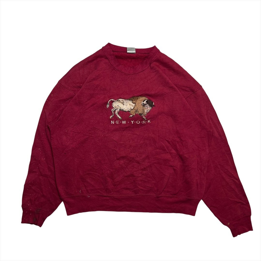 > New York バッファロー 刺繍 ロゴ スウェット トレーナー ワインレッド 古着 メンズ FREE スエット Vintage ヴィンテージ ビンテージ