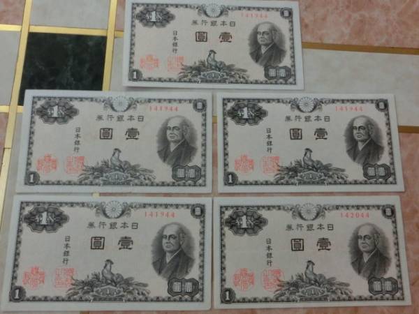 - 榎町(44) ★ 日本銀行券A号1円 二宮1円 5枚 ★ No.34