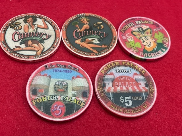 - C-16現状品 チップ 入手困難 本場海外 ラスベガスなど ヴィンテージ カジノチップ $5 ポーカーチップ ゴルフマーカー5枚セット