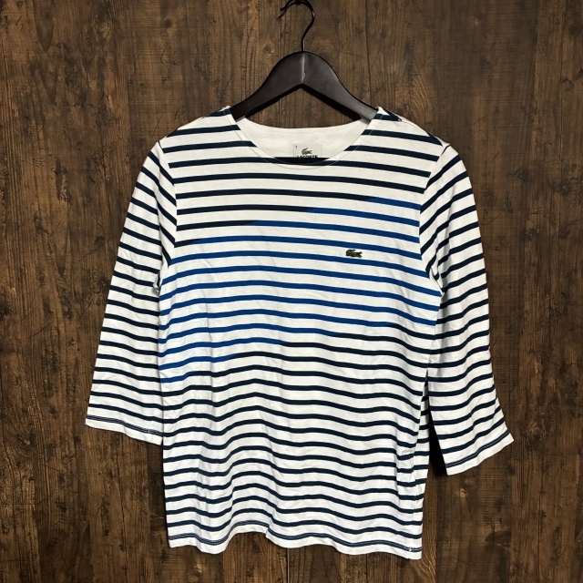 > M50◇LACOSTE | ラコステ ボーダー七分袖カットソー ホワイト×ブルー×ネイビー 3サイズ 中古品