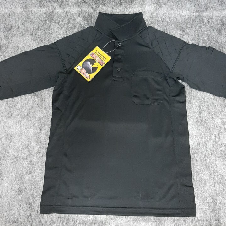 - 肩パット入り長袖ポロシャツ S ブラック 作業着