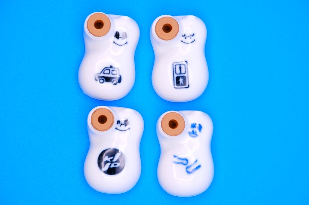- ひょうちゃん 神奈川県警コラボ 崎陽軒のシウマイ 醤油入れ 横浜名物 磁器製 パトカー 信号機 KPマーク おまけ 瀬戸物 4個セット 中古