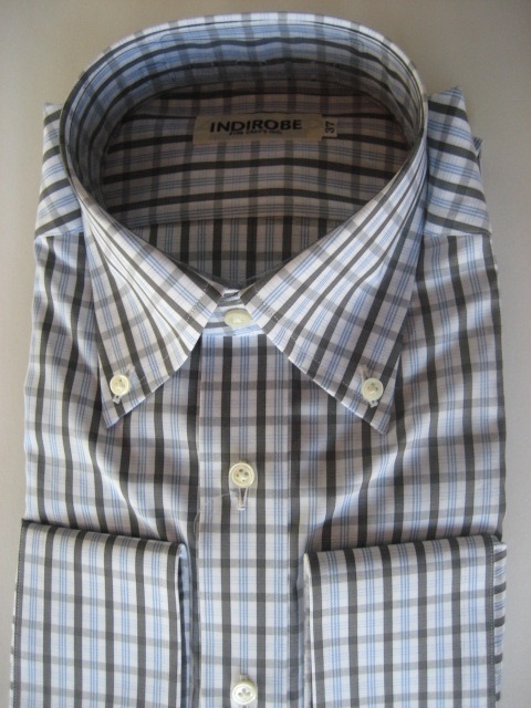 > ワイシャツ ボタンダウン グレー チェック 長袖 シャツ イタリア輸入生地使用 日本製 スリムフィット 綿100% (37 S サイズ) 未使用品