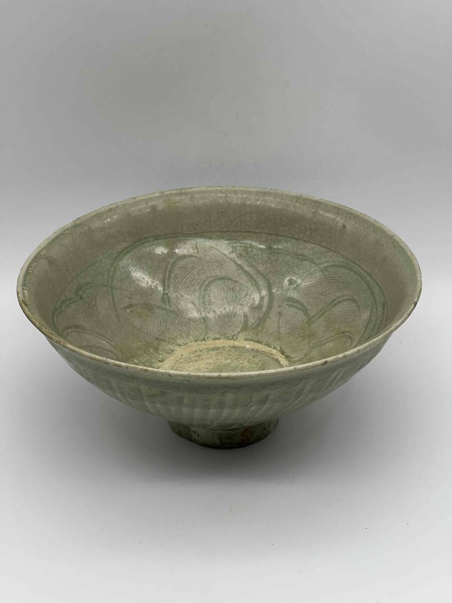 - 宋時代 青磁 耀州窯刻花碗 鉢 茶碗 唐物 古賞物 時代物 旧家蔵出し 茶道具 煎茶碗 中国古美術 骨董品(C-77)