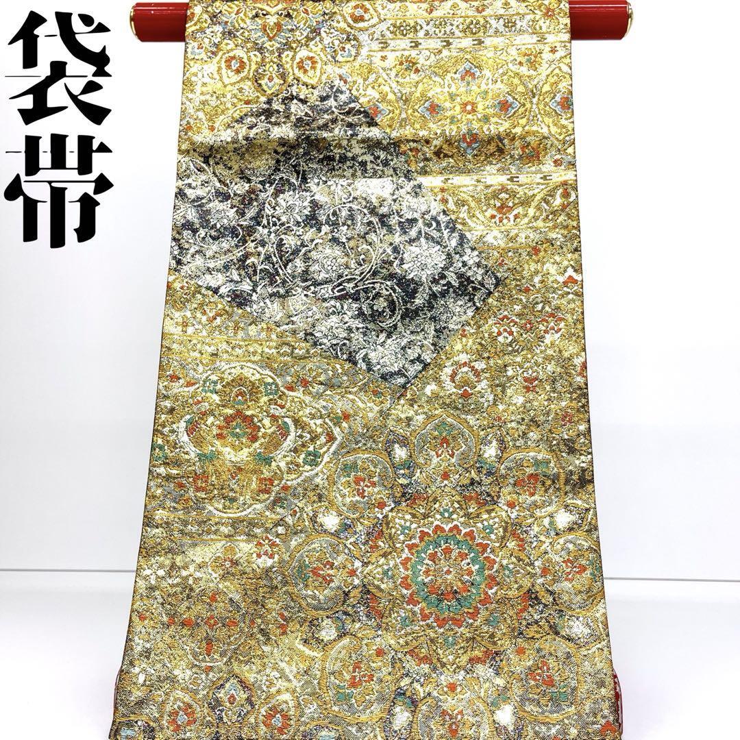 - 【着物と帯 時流】F25532◆正絹 袋帯◆華文様 更紗文様 ゴールド 美品