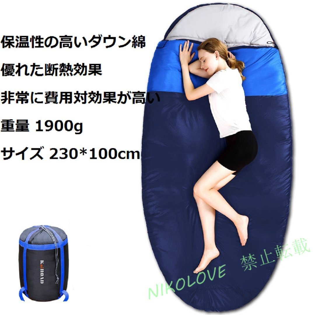 - 封筒型寝袋冬用2.5kgダックダウン -15度耐寒 320T防水両手出せる可能防寒アウトドアキャンプ収納袋付丸洗い防災 登山 車中泊 ダークブルー