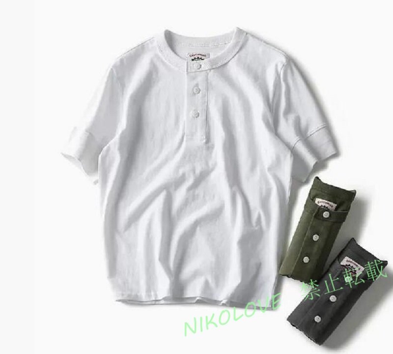 > 新品 ヘヴィウォッシュド アメリカン ヴィンテージ仕様 ヘンリー TEE 白 コットン 新 品 半袖 無地 Tシャツ 袖リブ