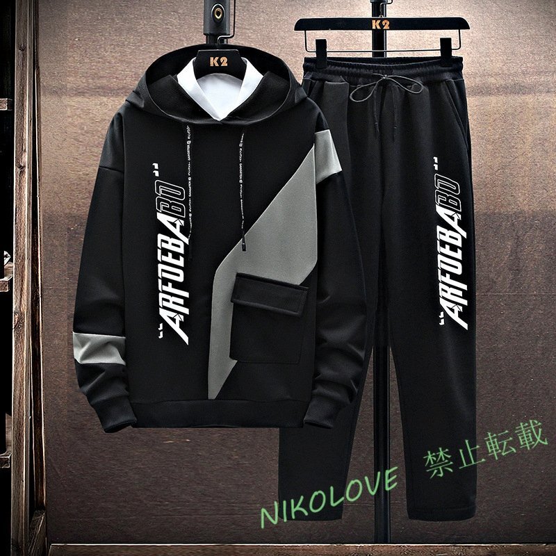 - 新品 メンズ スウェット セットアップ ジャージ 上下セット トレーナー パーカー フード付き 春秋 運動着 スポーツウェア 2色選択 M~3X