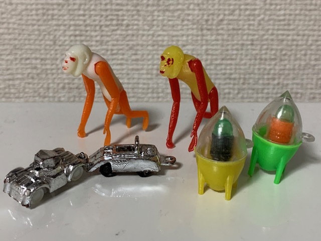 - 当時物 1970年代 駄玩具 オマケ 猿人コング2種 ロボット操縦宇宙船 連結戦車 セット パチ おまけ グリコ 森永 明治 昭和レトロ 希少 白黄