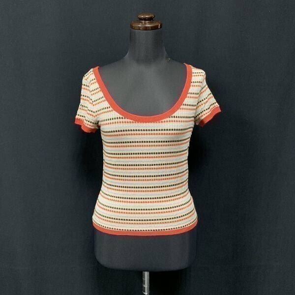 - イタリア製★マックス&コー★ドットボーダー柄/半袖カットソー【S/赤×茶×水色×ベージュ】伸縮性◆BA621W