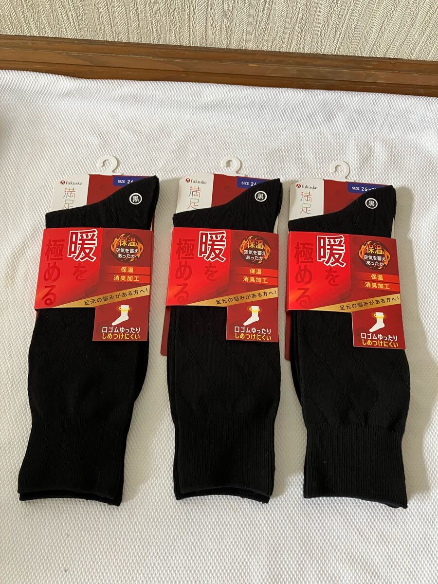 - 暖メンズ3足セット★福助fukuske満足 黒ダイア保温ソックス靴下26-28★