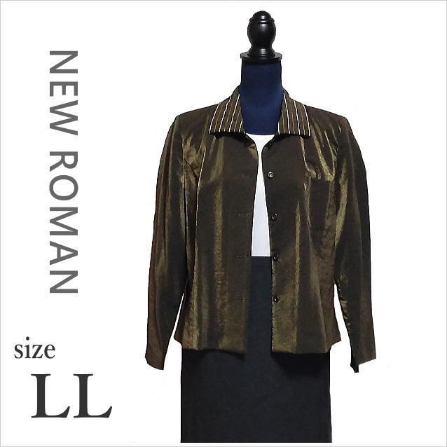 > 〔ROMAN ROSFLINA〕茶光沢シャツジャケット ニューロマン東京 日本製 薄手 長袖 羽織り 上品 レディース ゆったりサイズ LL ☆送料込み