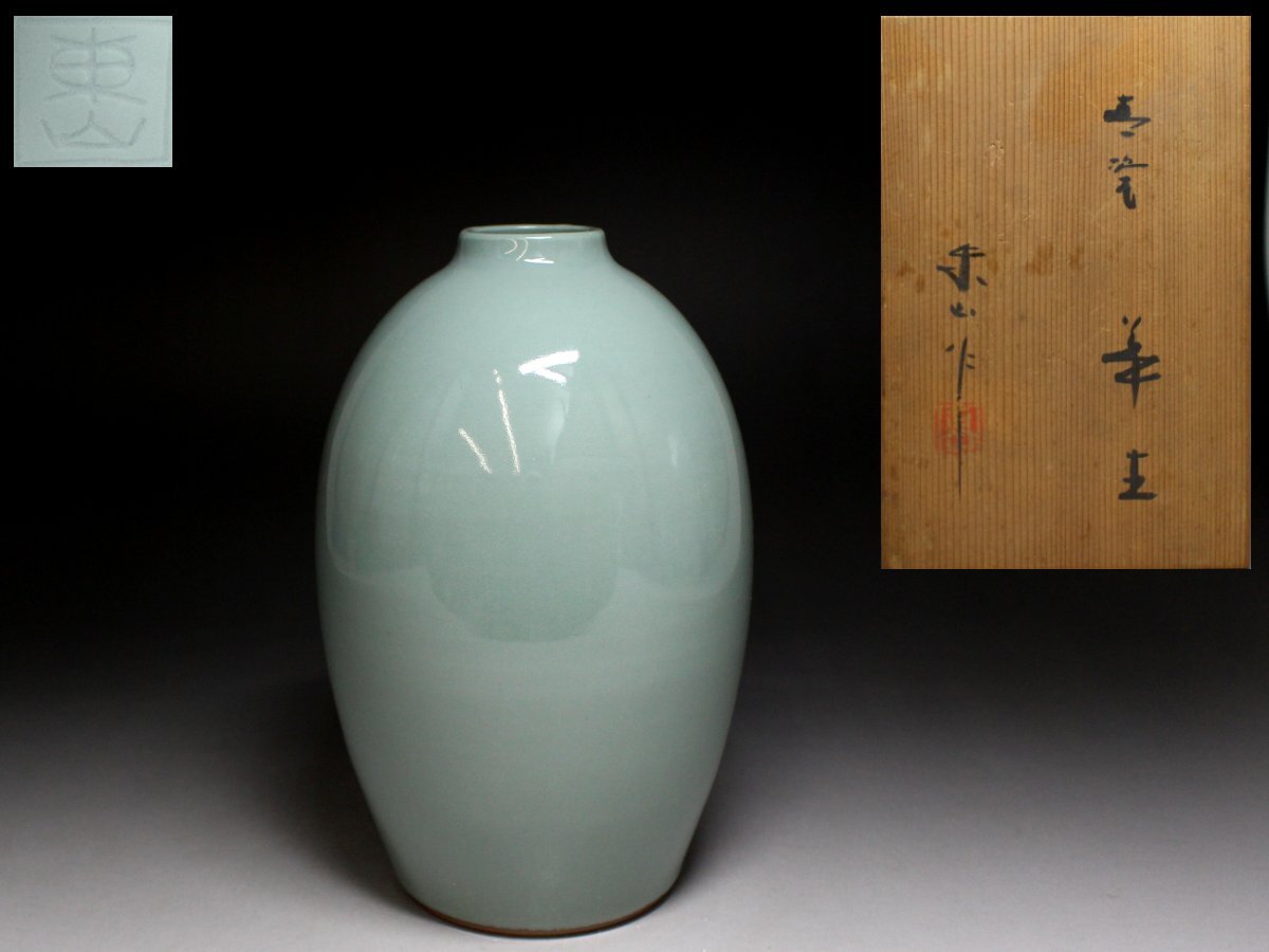 - ◆青磁・宮永東山 作・花器・花瓶・花生・共箱・共布◆a2540U