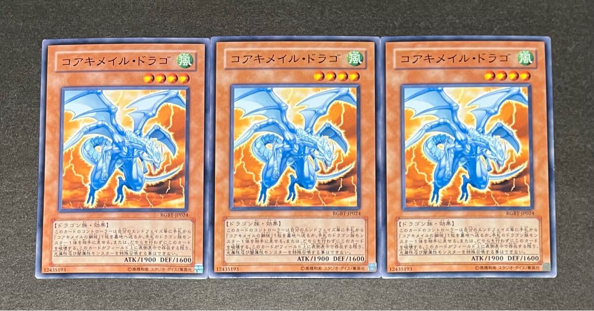 > 【状態良好〜傷有】コアキメイル・ドラゴ(ノーマル) 3枚セット RGBT-JP024 RAGING BATTLE レイジング・バトル 遊戯王 2009年 即決☆