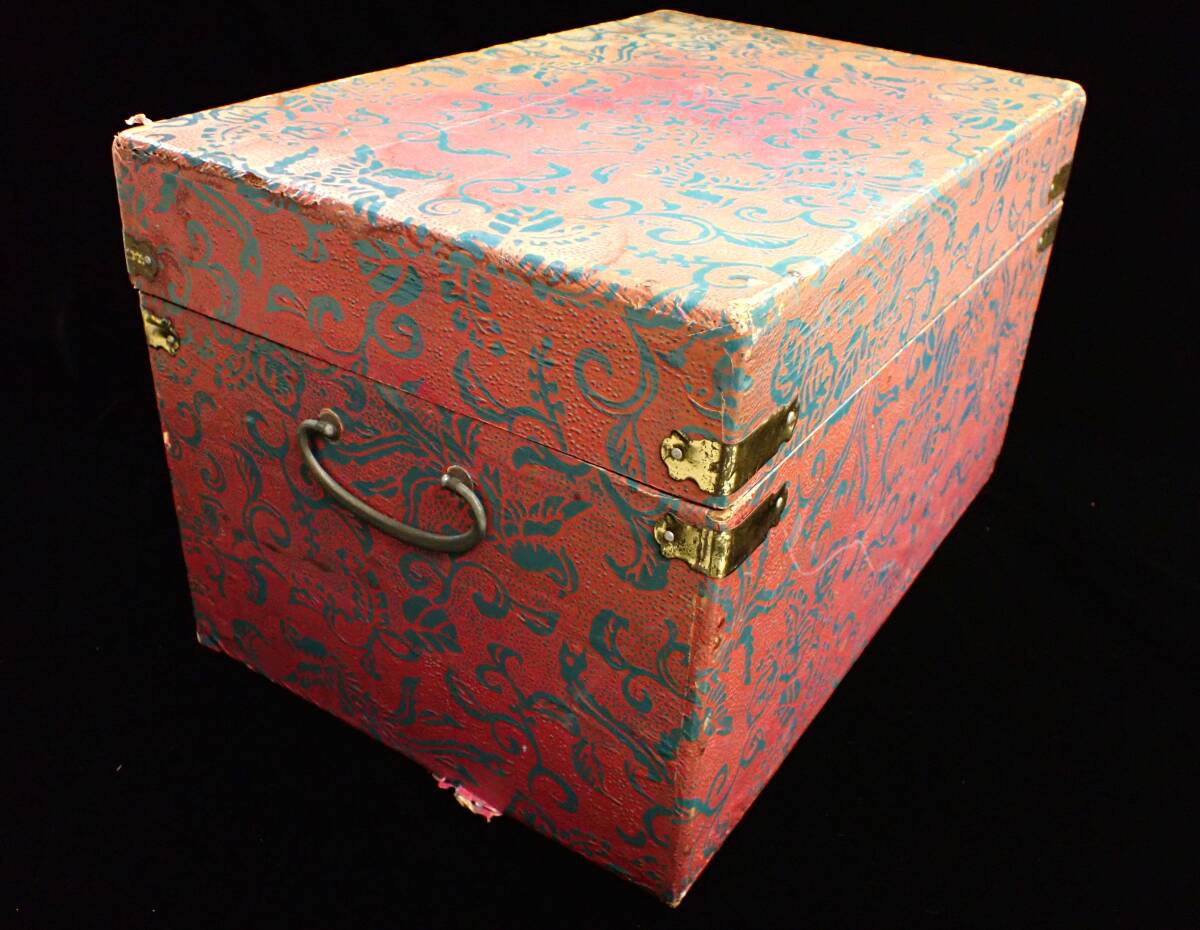 - 木箱 貼り箱 茶箱 衣装箱 収納 骨董 レトロ 昭和 衣装ケース インテリア 収納用品 日本製 カルトナージュ 古道具 昭和レトロ ヴィンテージ