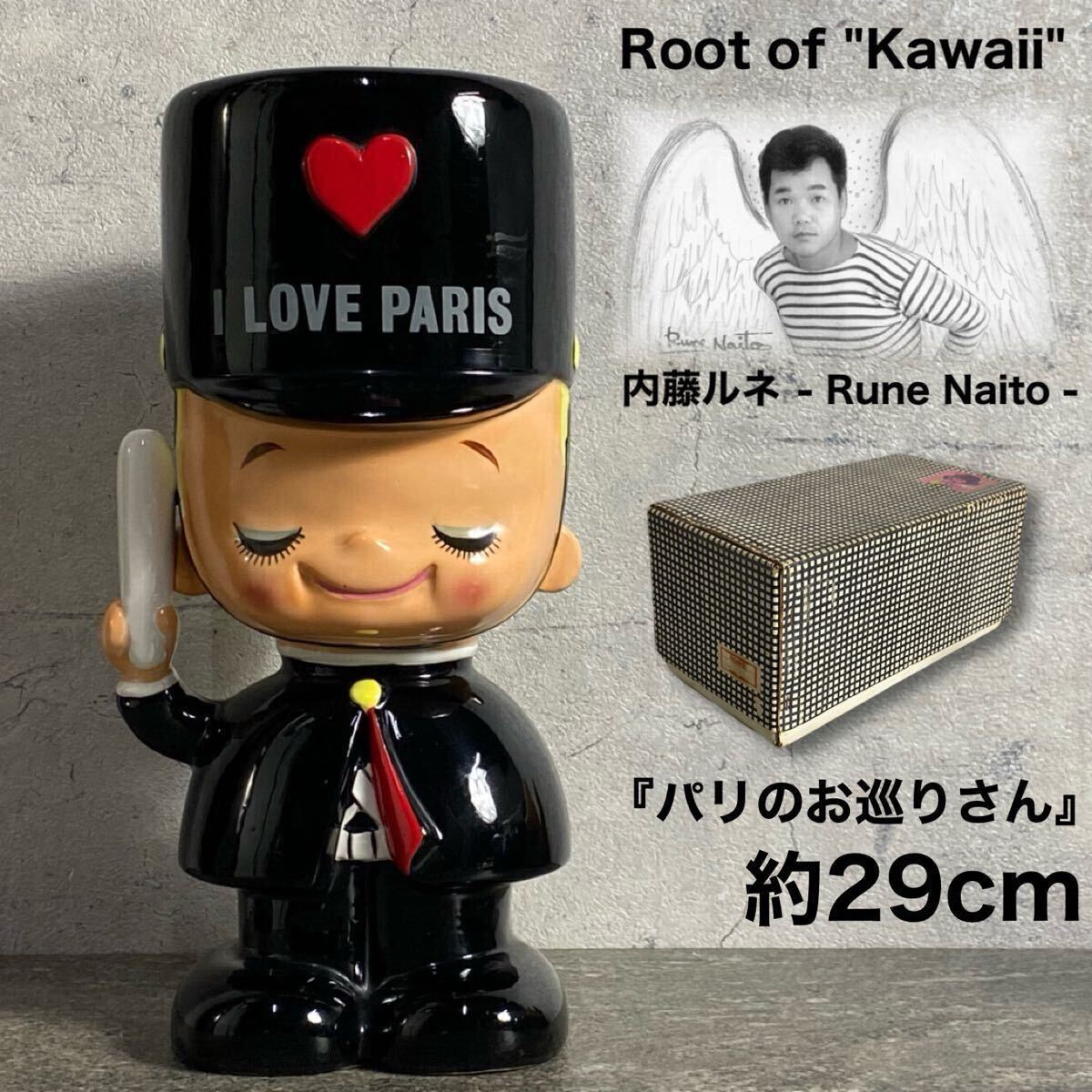 - MJ250416-1【当時物】内藤ルネ 貯金箱 I LOVE PARIS パリのお巡りさん 警察官 約29cm 昭和レトロ