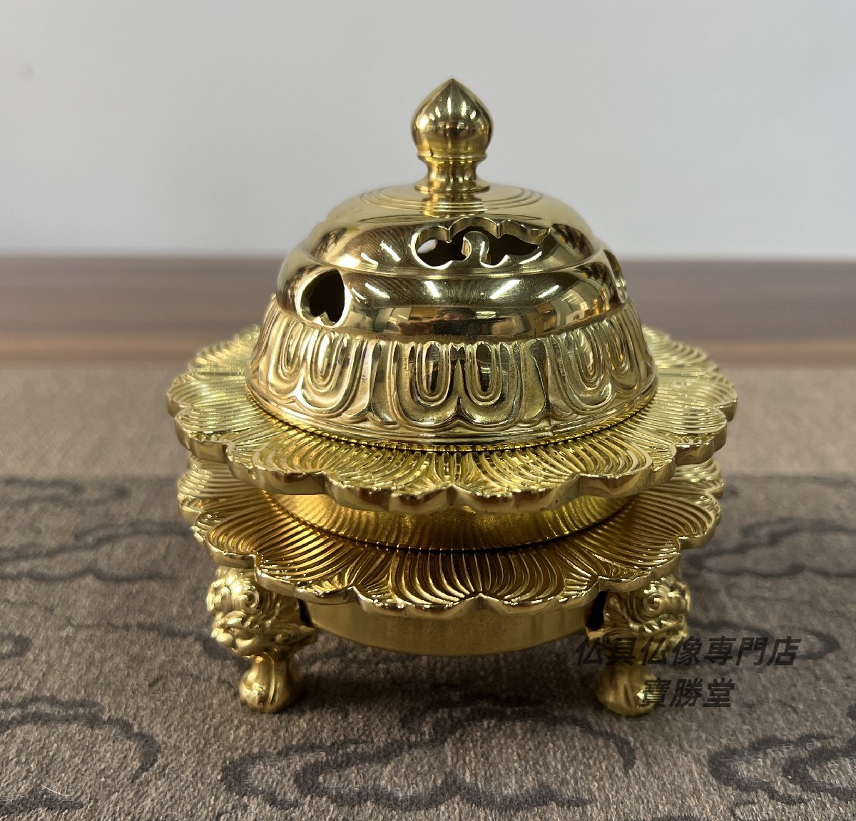 - 密教法具 火舎香炉 大々型 蓮華 筋彫 仏具 真鍮製 【送料無料】【仏具仏像専門店寶勝堂】