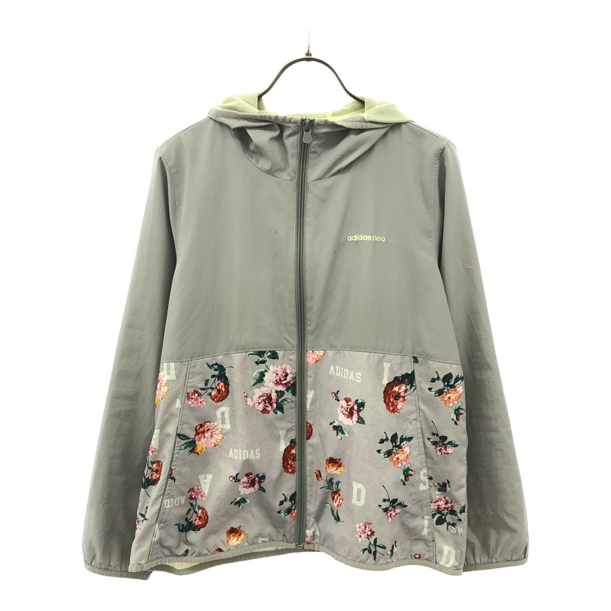 - adidas NEO アディダス ネオ プリント 花柄 長袖 ジップパーカー M グレー 裏メッシュ トレーニング レディース