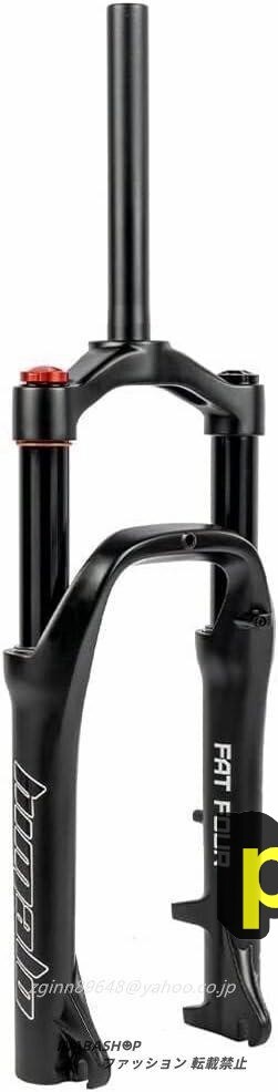 > 20インチMTBマウンテンバイクファットフォーク、ロックディスク付きエアガスサスペンションフォークブレーキアルミニウム合金4.0 タイヤ用