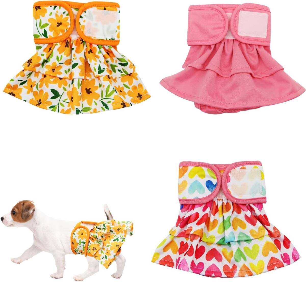 - 雌犬用ペット用おむつ - 犬の女性のための ラップおむつ - 発情期の雌犬用高吸収おむつモレ防止パンツ( オレンジフラワー 1枚 XS)