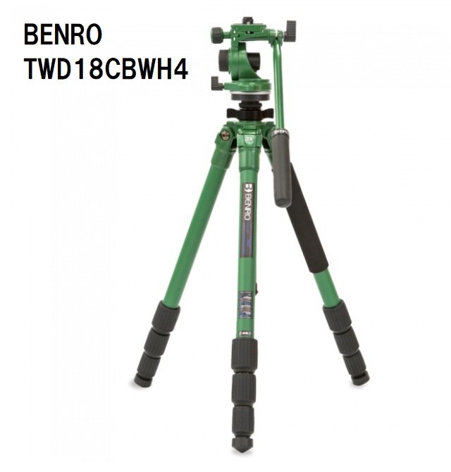 > 【特価品/送料無料】未使用品 BENRO(ベンロ) TWD18CBWH4 グリーンカーボンファイバー三脚 WH4 ビデオヘッド付き 6931747310487