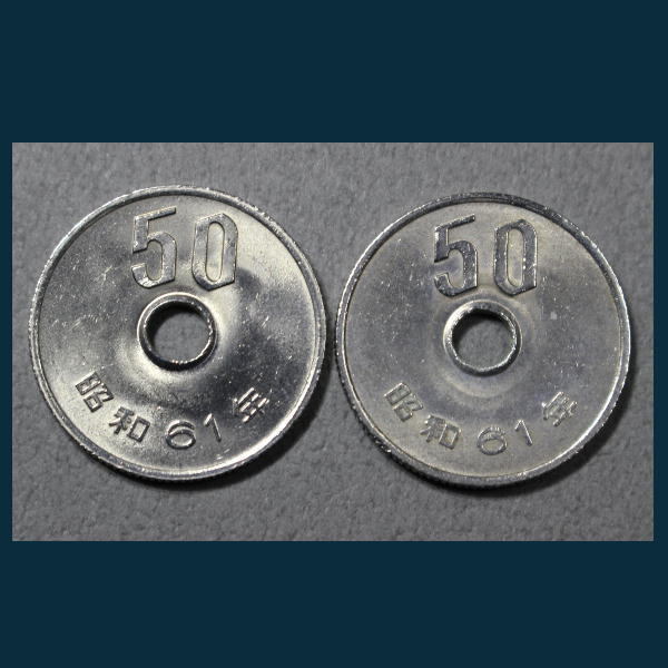 - 50円白銅貨 昭和61年 2枚 未使用 t0006