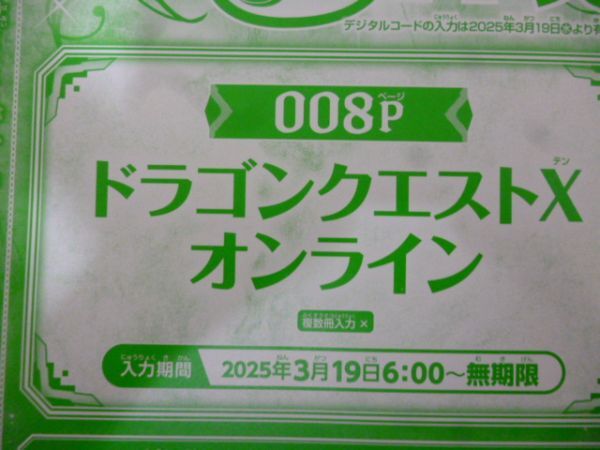 - ドラゴンクエストⅩ オンライン Vジャンプ5月特大号デジタルコード 25年3月19日~無期限