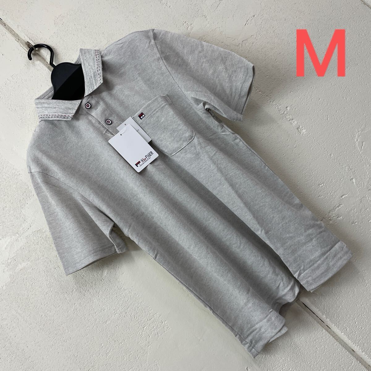 - Mサイズメンズ胸ポケット半袖ポロシャツ グレー