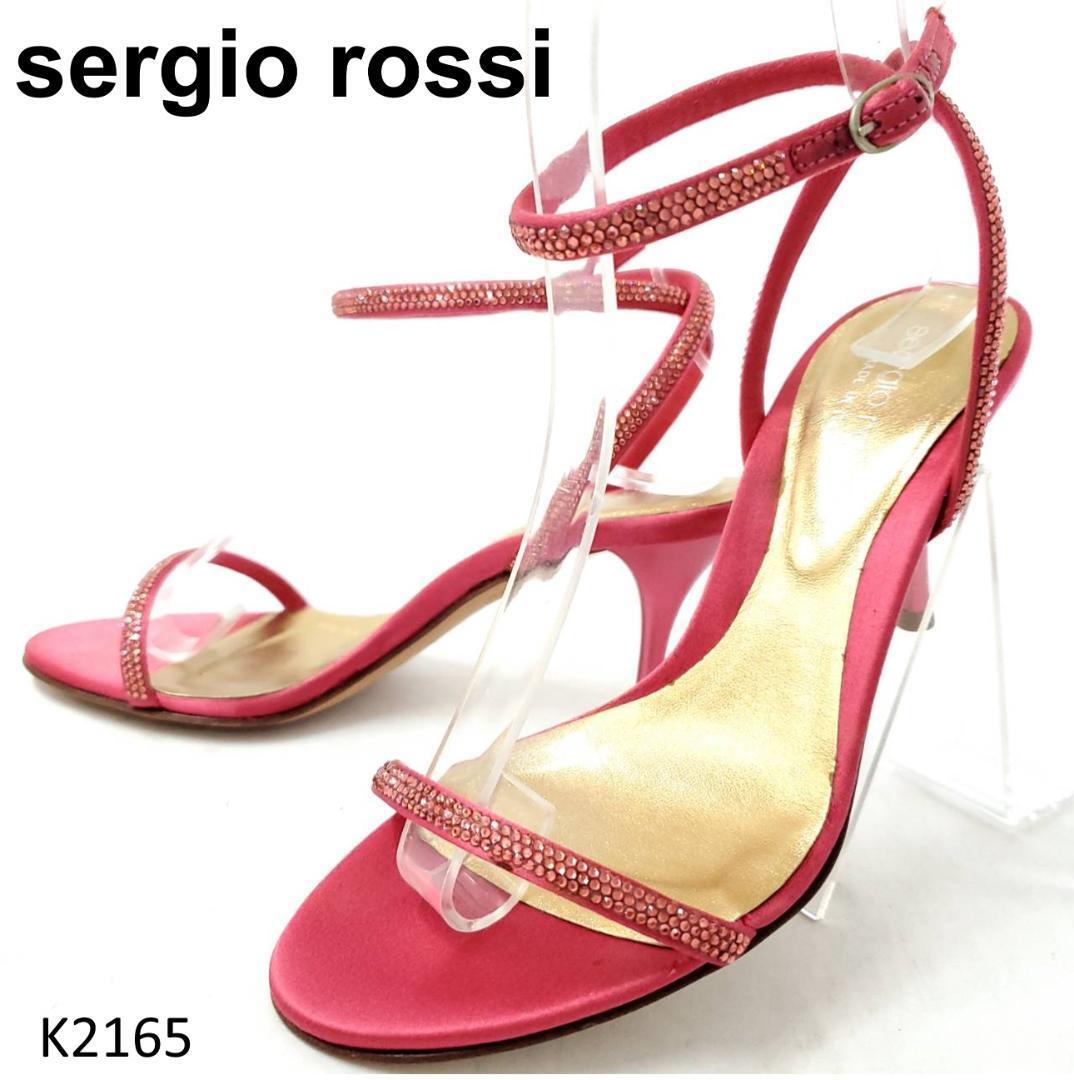 - セルジオロッシ ラインストーン アンクルストラップ サテン 極美品 ピンク