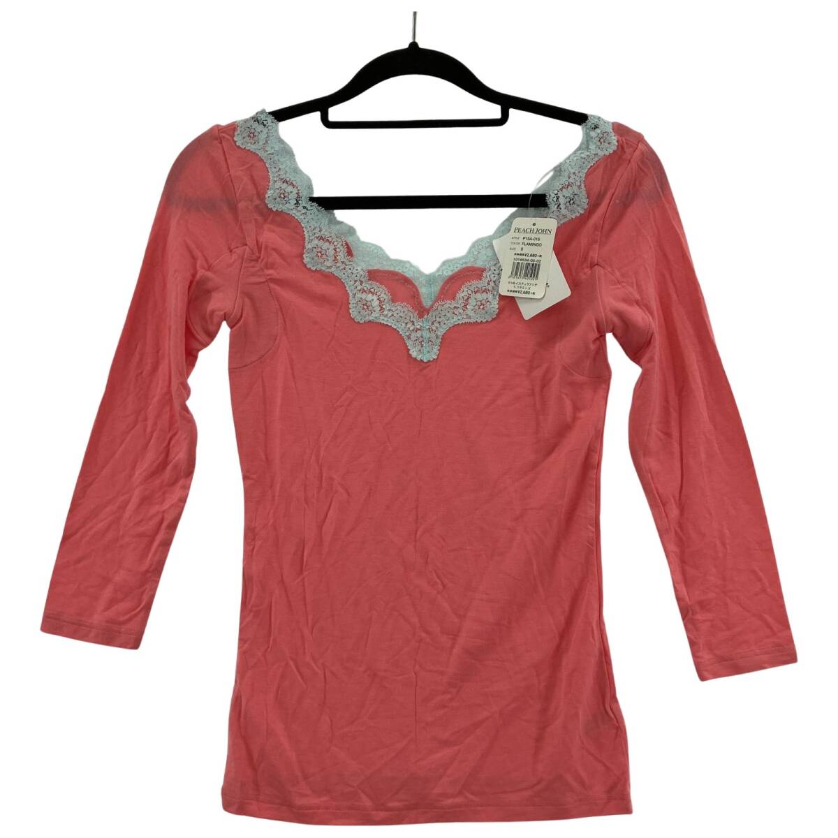 - 美品 PEACH JOHN ピーチジョン タグ付き レース 9分袖 カットソー sizeS/ピンク×ライトブルー ゆうパケットOK