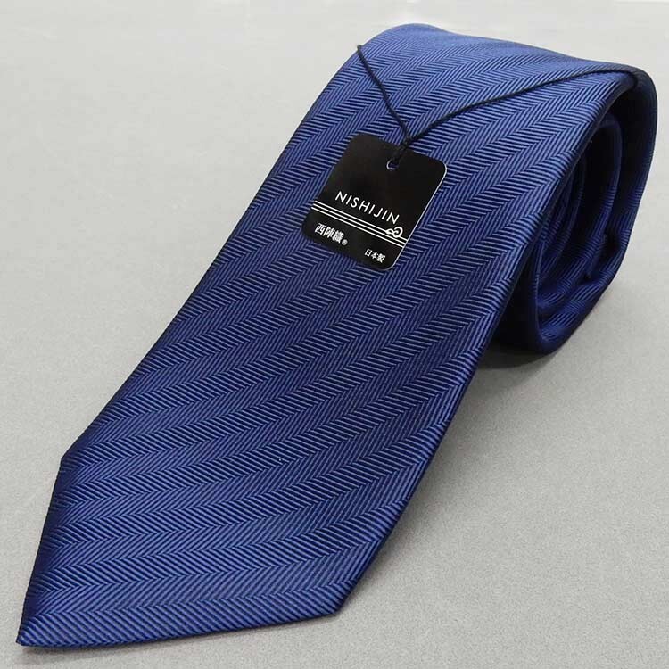 - 西陣織 ハンドメードネクタイ セッテピエゲ セブンホールド 紺 ヘリンボーン シルク100% 日本縫製 メール便送料無料 NJ-ST11