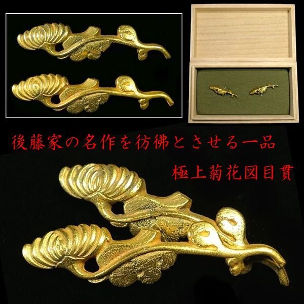 > 【 恵 #1632 】 後藤家の名作を彷彿とさせる一品 金色抜群の極上菊花図 赤銅地目貫 拵え栄え抜群の一品です! 検:鍔/刀剣/刀装具