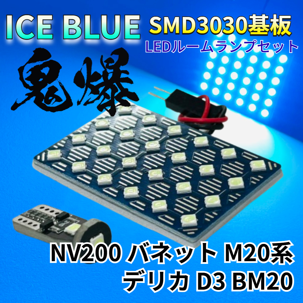 > 【アイスブルー】NV200 バネット M20系 デリカ D3 BM20 鬼爆基板 3030SMD LED ルームランプ セット 車内灯 室内灯 パーツ アクセサリ