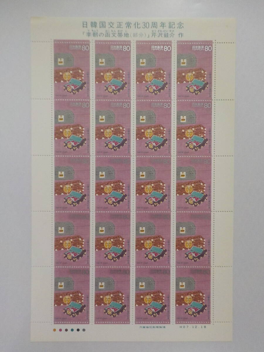 > 日韓国交正常化30周年記念 李朝の箱文帯地( 部分 ) 芹沢銈介 作 解説書付き / 80円切手シート 未使用