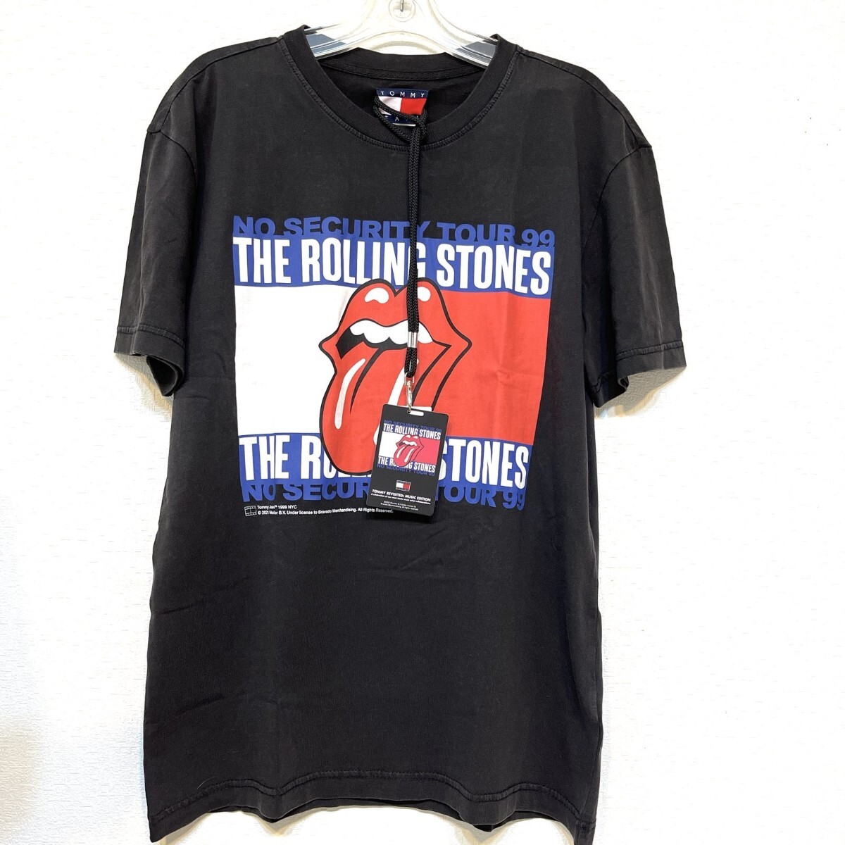 - コラボ ローリングストーンズ 1999 Tシャツ 半袖 Tee トミー ヒルフィガー ブラック 黒 ダメージ加工 新品 ブランド 復刻版