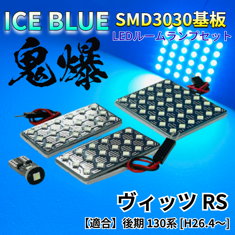 - 【アイスブルー】ヴィッツRS 後期 130系 [H26.4~] 鬼爆基板 3030SMD LED ルームランプ セット 車内灯 室内灯 パーツ アクセサリ