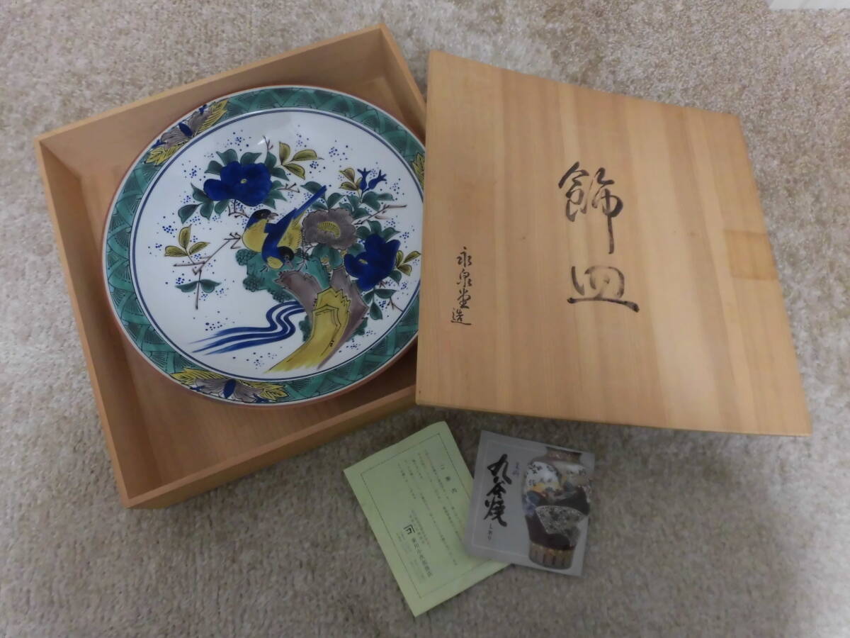 > 中古品 ★アンティーク 昭和レトロ★九谷焼 永泉 久谷永泉 花鳥模様 飾り皿 絵皿 大皿 皿 ★1枚