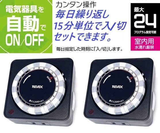- 2個/セット★24時間決まった時刻をON/OFF・プログラムタイマー・リーベックスPT26BK-2