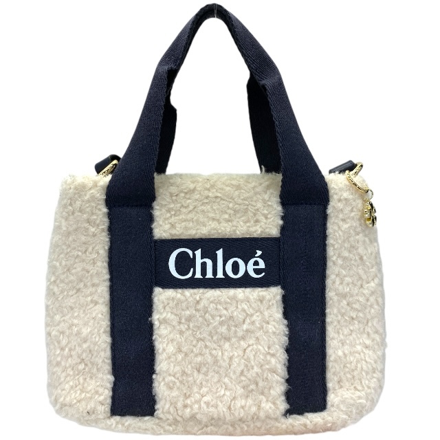 > Chloe クロエ 2way ハンドバッグ ショルダーバッグ 手持ち鞄 肩掛け 斜め掛け ロゴ ボア ネイビー ホワイト