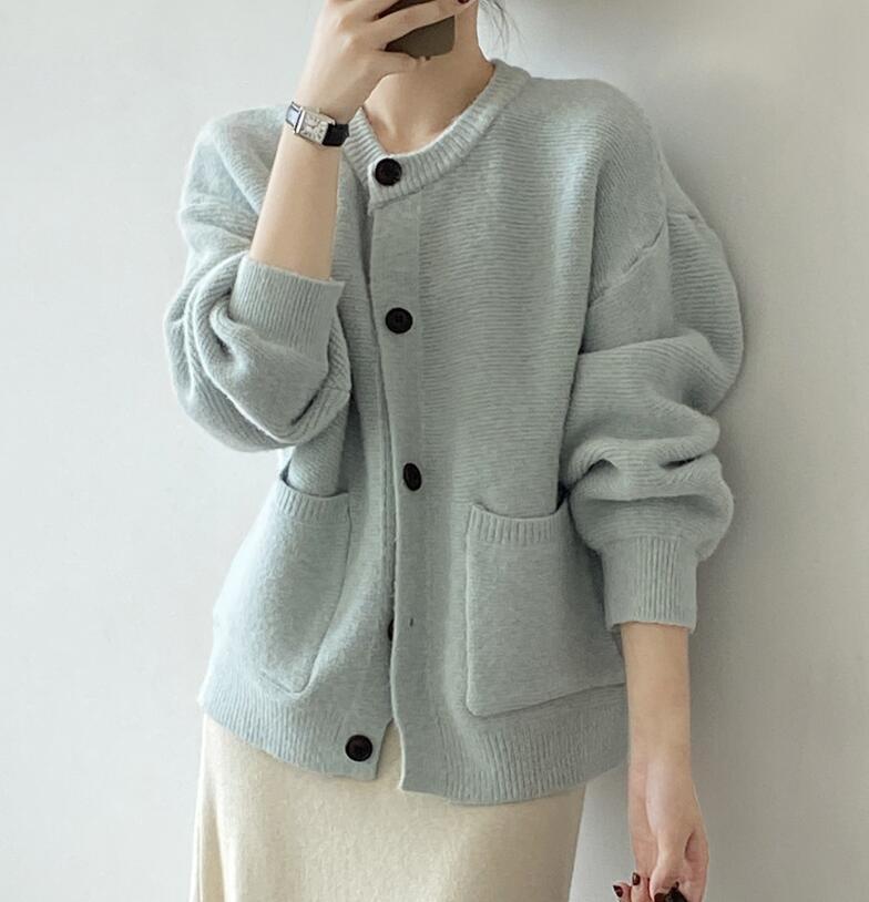 - 秋新品*カーディガン ニット レディース ニットセーター 長袖 カーディガン トップス ニット フィス 通勤 トップス* 水色