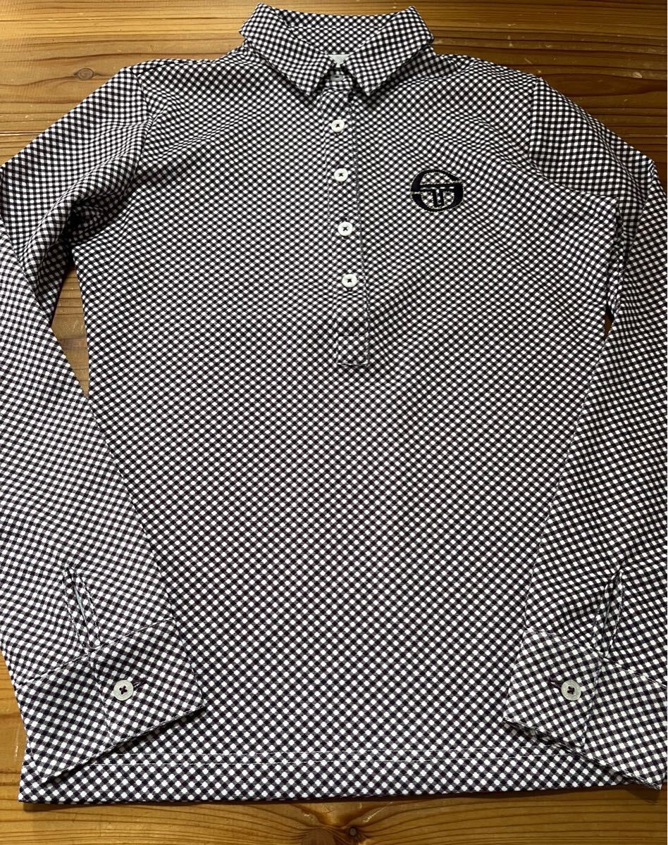 > 送料込み! SERGIO TACCHINI 美品 セルジオタッキーニ 長袖ポロシャツ ギンガムチェック Mサイズ パープル GOLF ゴルフウェア テニス