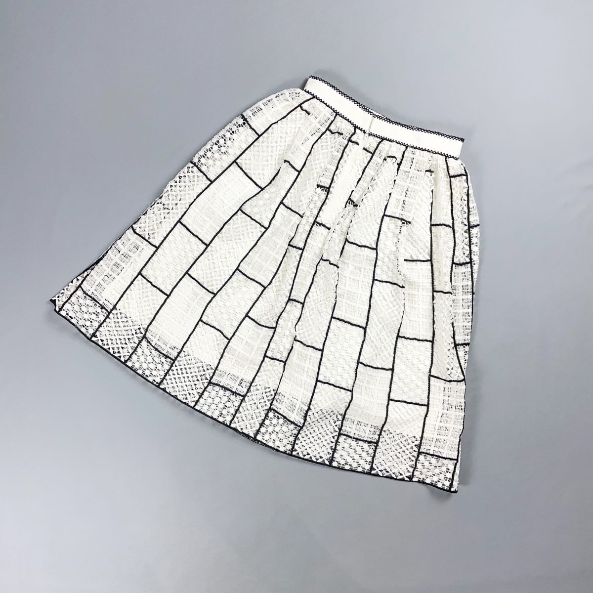 - Sov. ソヴ DOUBLE STANDARD CLOTHING ダブルスタンダードクロージング ブロッキングレースフレアスカート 膝丈 白 ホワイト サイズ38*BD488