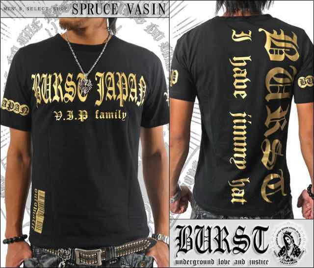 > BURST JAPAN ロゴプリント&バーコードプリント半袖Tシャツ ゴールド 70534 新品 ブラック×ゴールド L