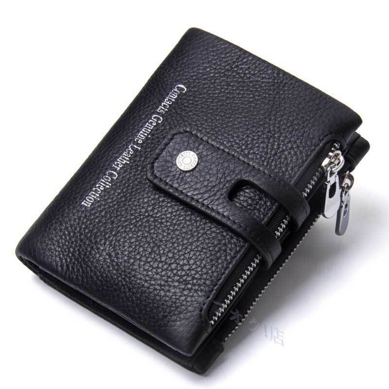 - 財布 二つ折り 財布 本革 牛革 メンズ ラウンドファスナー 小銭入れ コンパクト ブラック
