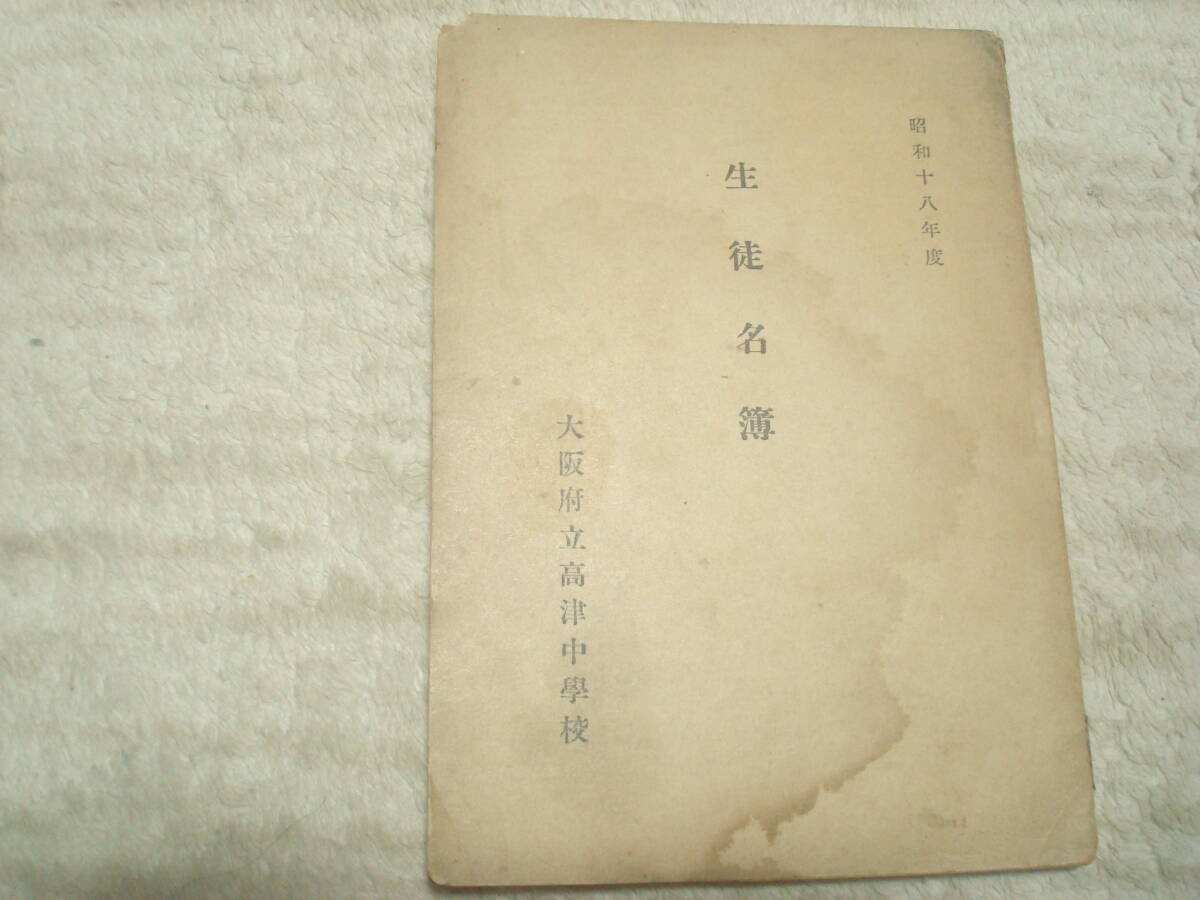 - 大阪府立高津中学校生徒名簿 昭和18年度 旧制中学校 肥田晧三氏の名前あり 大阪市
