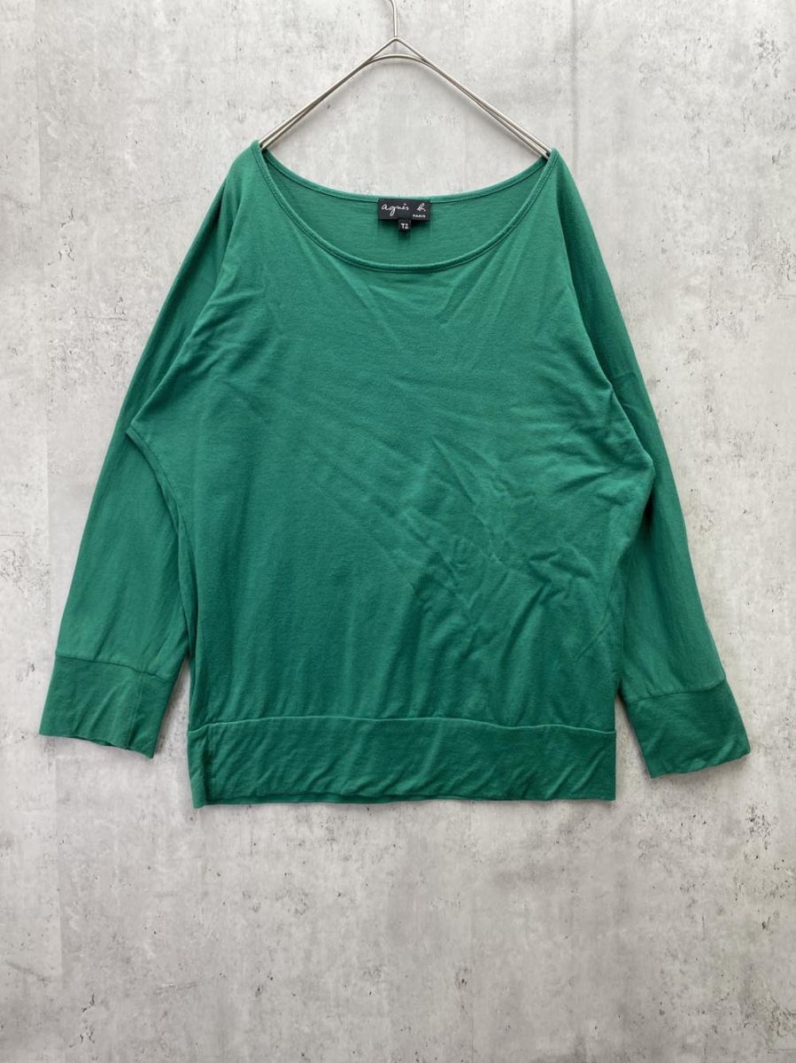 - ゆうパケットOK agnes b アニエスベー 無地 長袖 カットソー sizeT2/緑 ■◆