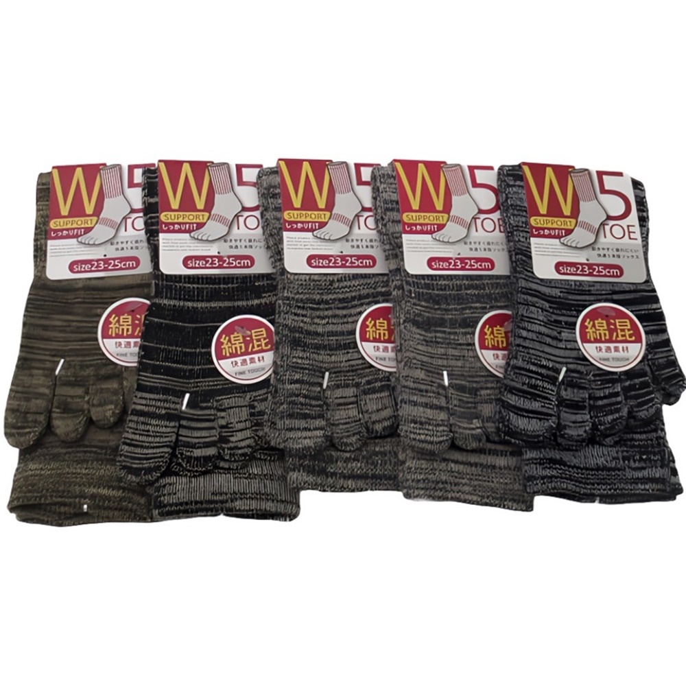 - 5本指ソックス 引き揃え柄 B 5足セット ダブルサポート レディース size 23-25cm 綿混素材