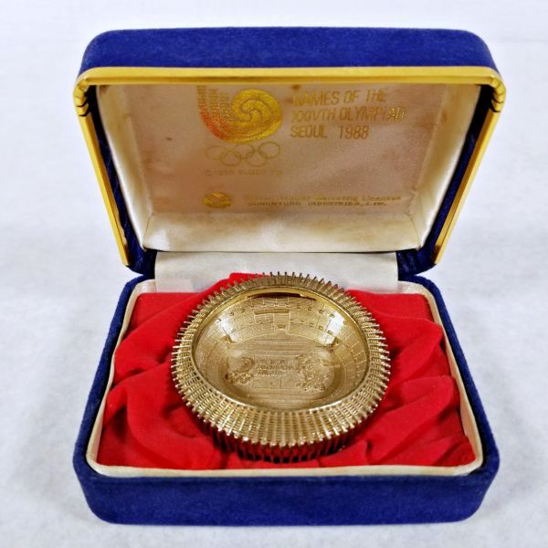 > 1988年 ソウルオリンピック 記念品 メインスタジアム アシュトレイ 置物 金色? オリンピック SLOOC TM