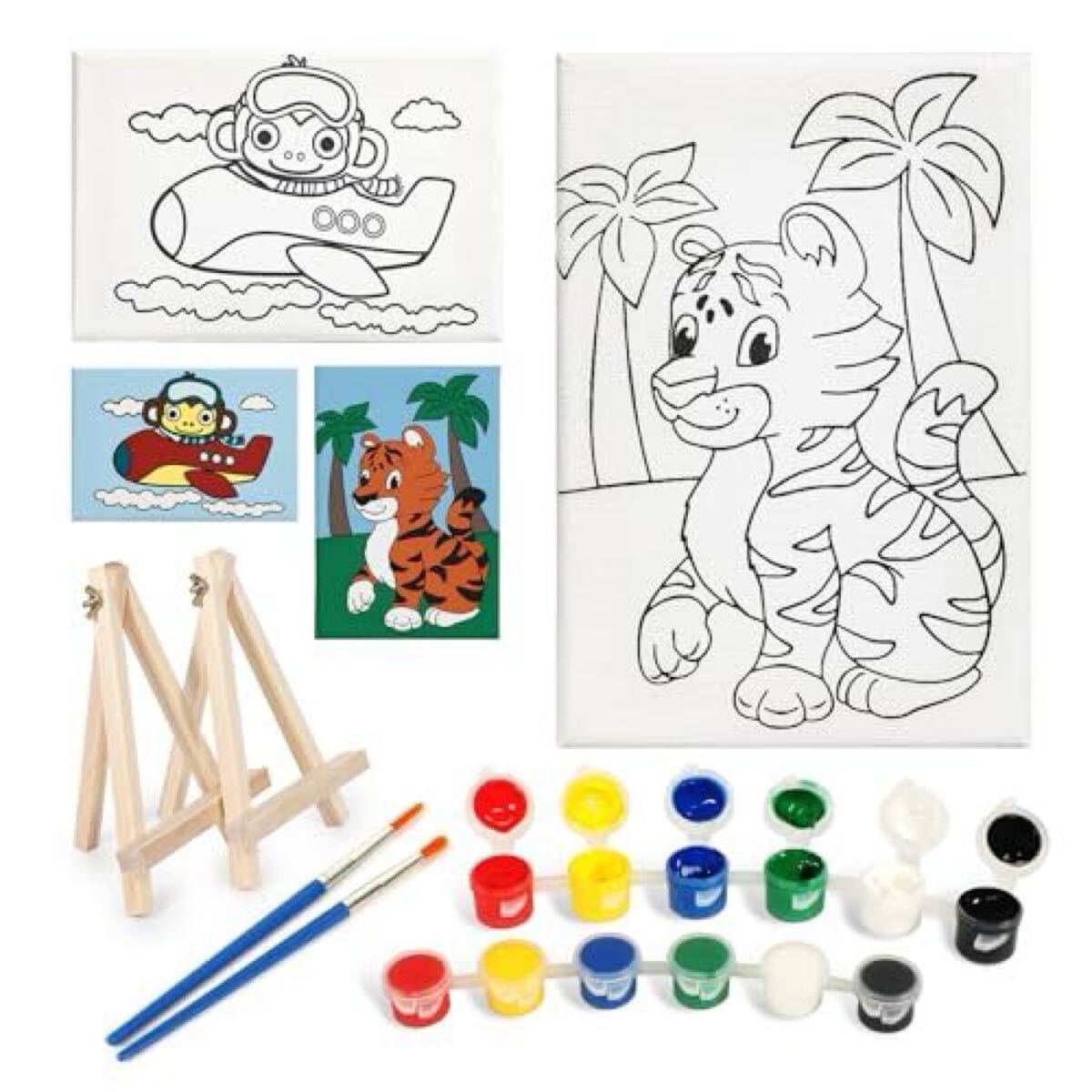 - HANSILK お絵描きキット 動物 塗り絵 絵の具セット 手作りキット キャンバス 化繊綿 ライト木製フレーム 厚手 パネル 描